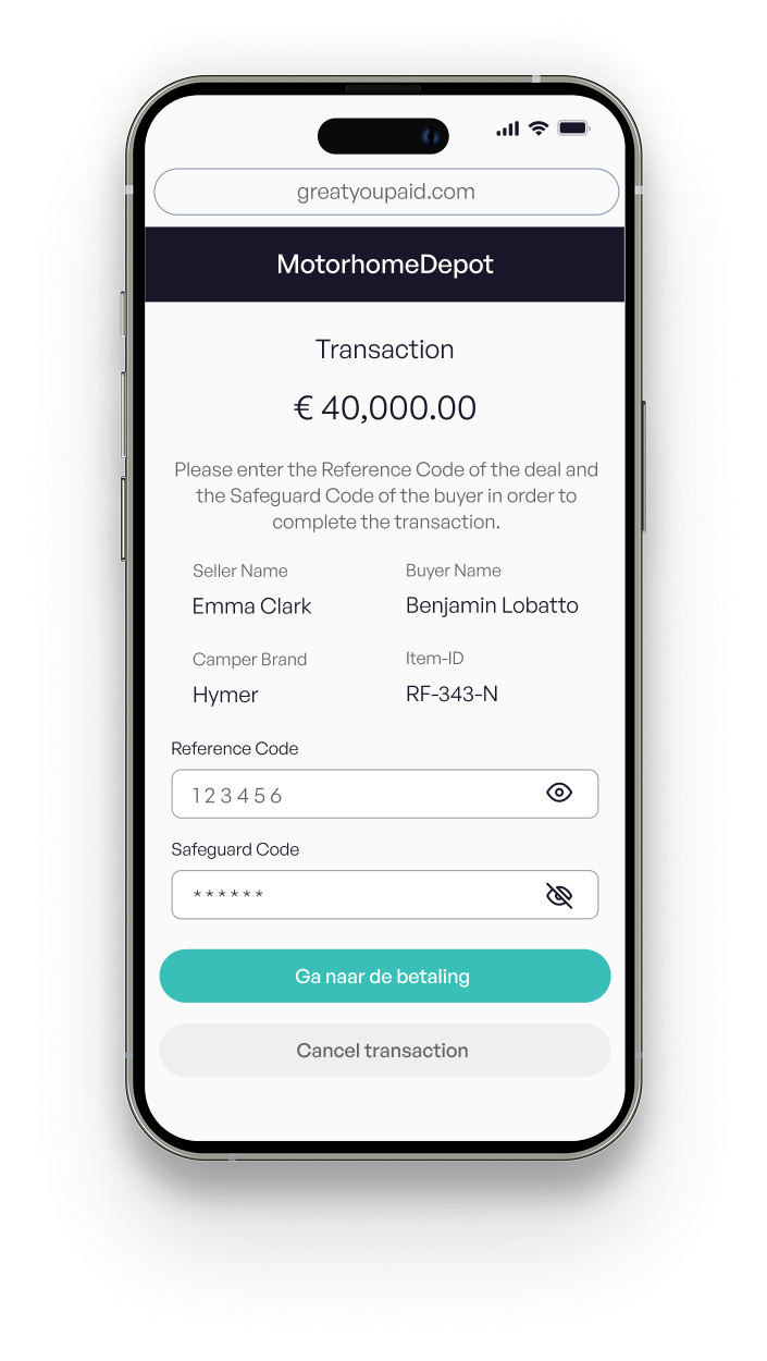 It is important to note that your payment will only be processed after both parties have agreed and the transfer has been completed. This applies to deposits, residual payments and any additional costs. So you can do business with confidence knowing that your financial transactions are safe with GreatYouPaid.